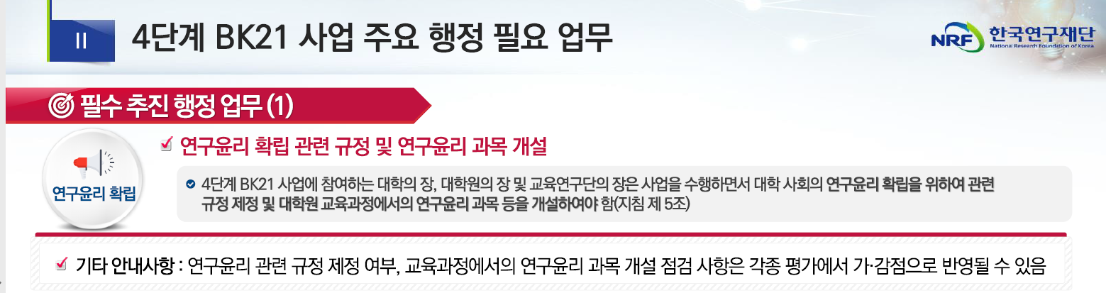 4단계 BK21 사업 주요 행정 필요 업무 중 필수 추진 내용이 있습니다.