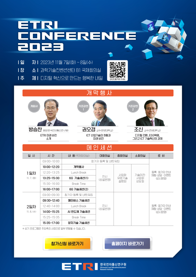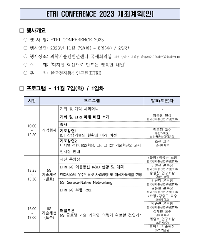 ETRI Conference 2023 (2023.11.7~8/ 과학기술컨벤션센터 B1 국제회의실)
